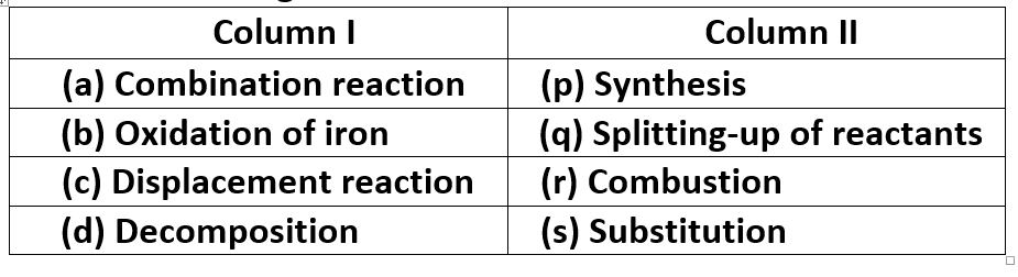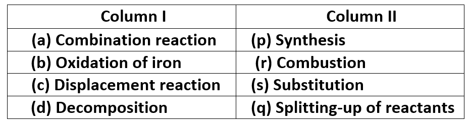 Q 12 – For the given reaction, match column I with column II and mark the correct option from the codes given below.