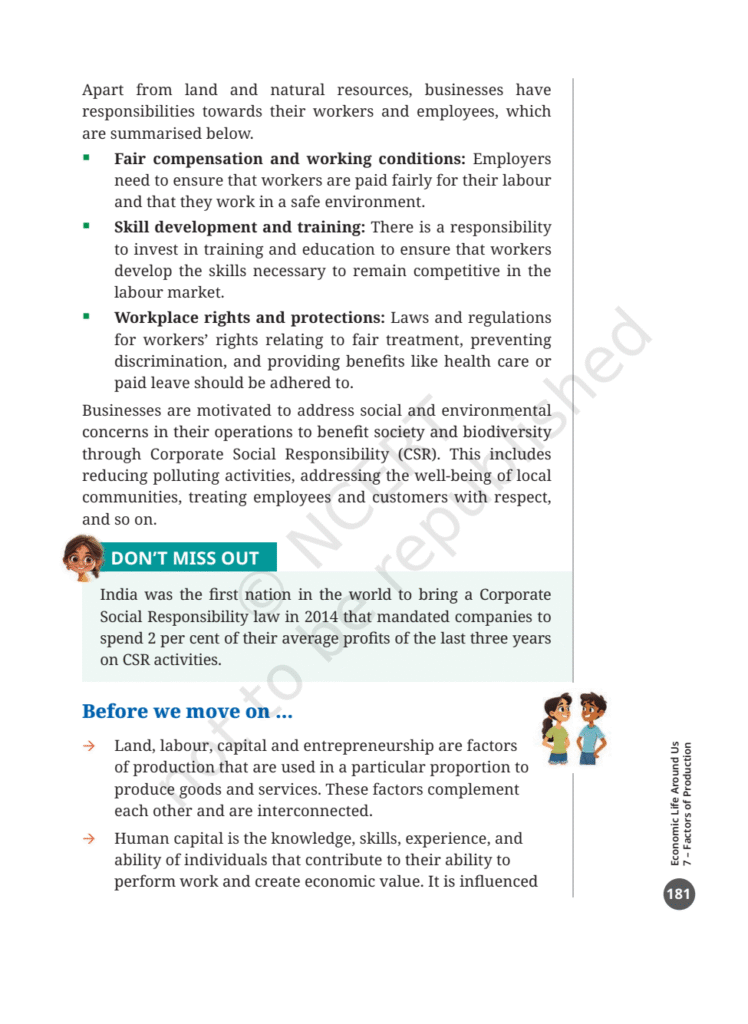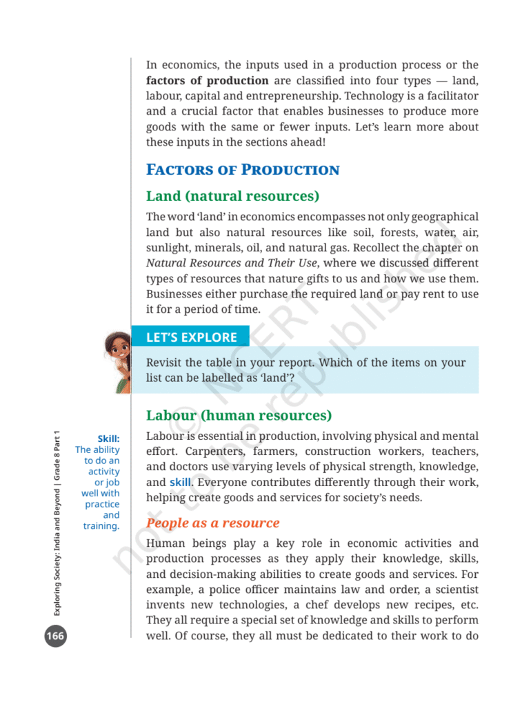 Factors of Production Social Science NCERT Book